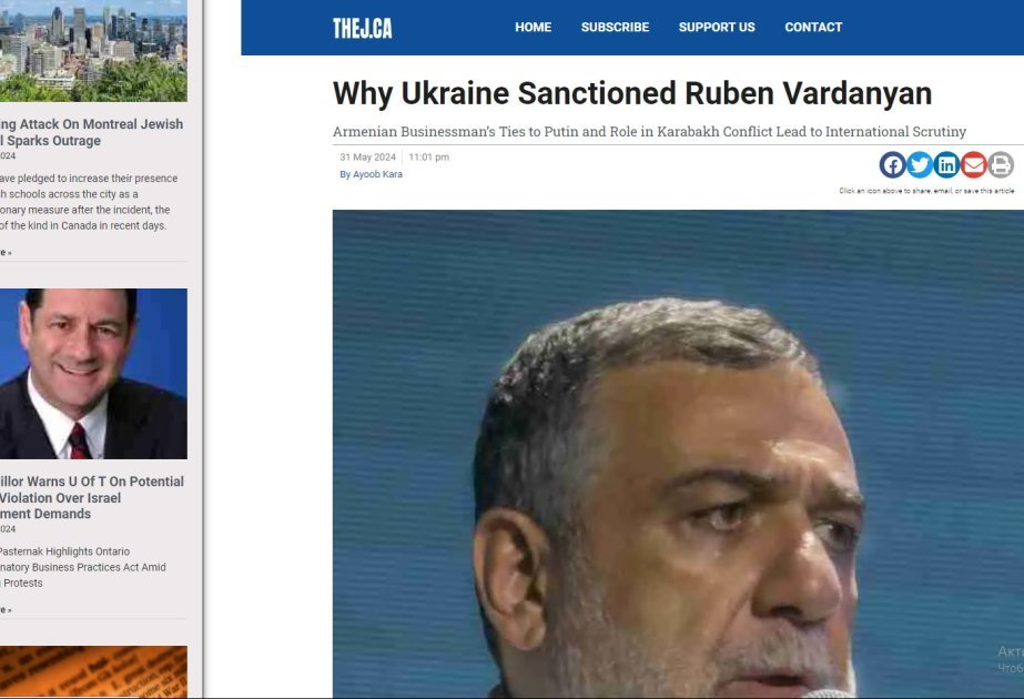 Bu barədə İsrailin sabiq rabitə, peyk və kibertəhlükəsizlik naziri, İqtisadi Sülh Mərkəzinin prezidenti, tanınmış siyasətçi və politoloq Ayub Kara Kanadanın nüfuzlu “Thej.ca” nəşrində dərc olunmuş “Ukrayna Ruben Vardanyana qarşı niyə sanksiyalar tətbiq etdi?” sərlövhəli məqaləsində yazıb. Qeyd olunub ki, Qarabağdakı separatçı rejimdə “dövlət naziri” olmuş Vardanyan Azərbaycanın təhlükəsizlik qüvvələri tərəfindən həbs edilib. O, Azərbaycana qarşı terrorçuluğu maliyyələşdirməkdə, beynəlxalq sərhədləri qanunsuz keçməkdə, Ermənistanla Azərbaycan arasında sülh prosesini sabotaj etməkdə, Azərbaycana qarşı erməni terror təşkilatları ilə qarşılıqlı əlaqədə ittiham olunur.