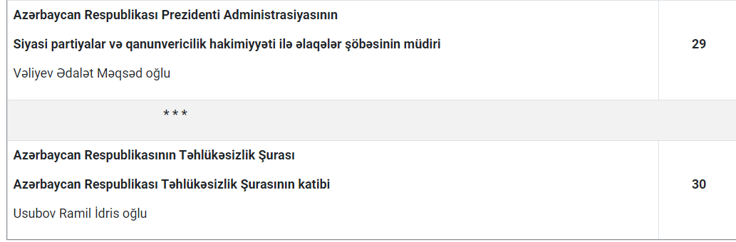 Qeyd: Vətəndaşlar Azərbaycan Respublikası Prezidenti Administrasiyasının Vətəndaş Qəbulu Mərkəzində qəbul olunurlar.