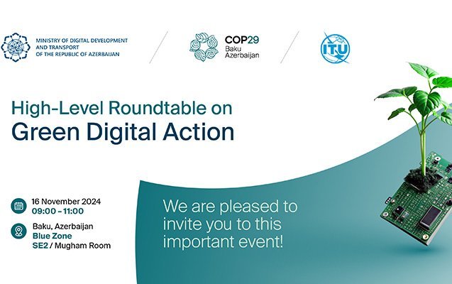 Noyabrın 16-da Bakıda COP29 çərçivəsində Yaşıl Rəqəmsal Fəaliyyət üzrə yüksəksəviyyəli dəyirmi masa keçiriləcək.